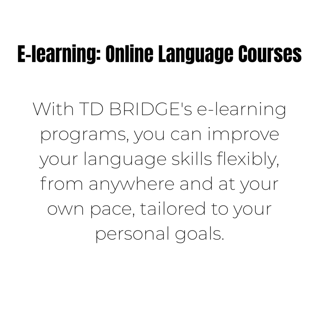 To help you progress, TD BRIDGE offers a variety of e-learning formats that are flexible, efficient, and designed for your success. With TD BRIDGE’s online courses, you can improve your language skills 24 hours a day, 365 days a year. Choose the online language training that suits you best.