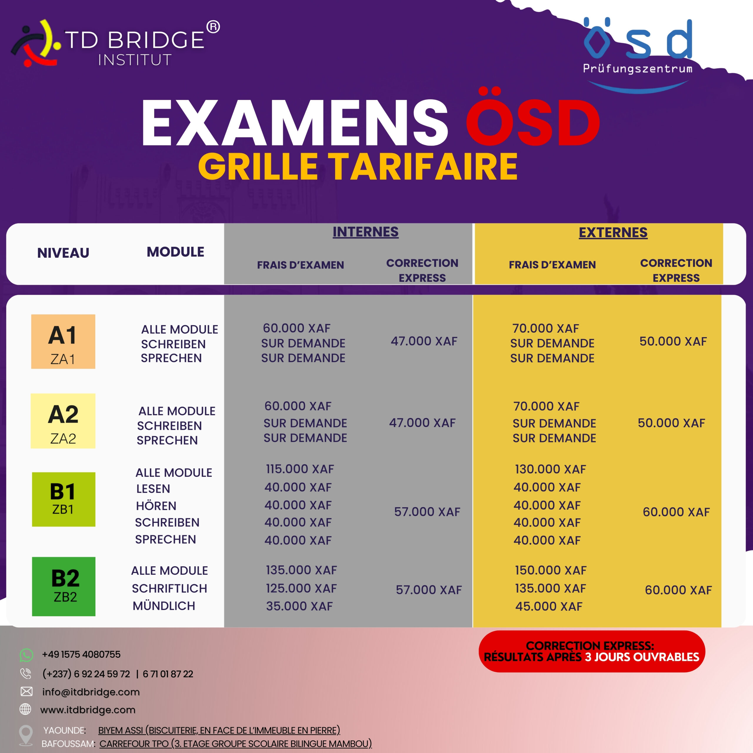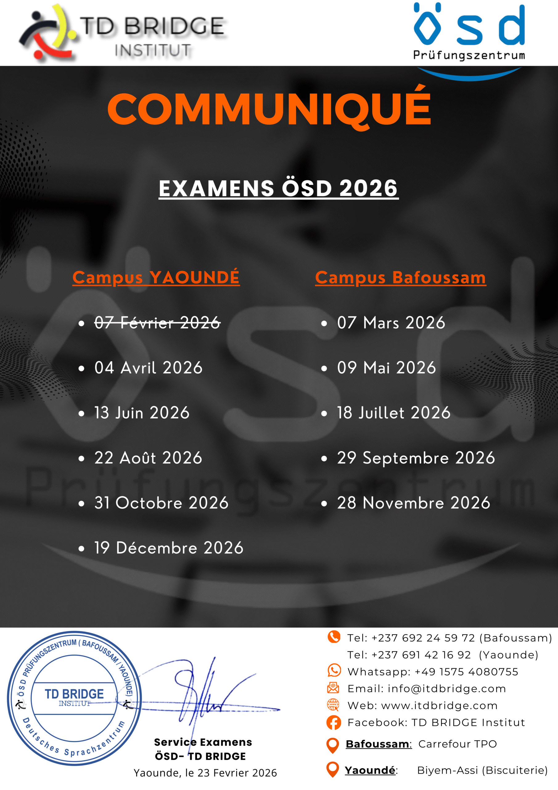 Passez alors votre examen de certification allemande ÖSD dans notre centre d’examen ÖSD agréé, TD BRIDGE INSTITUT, à Bafoussam.