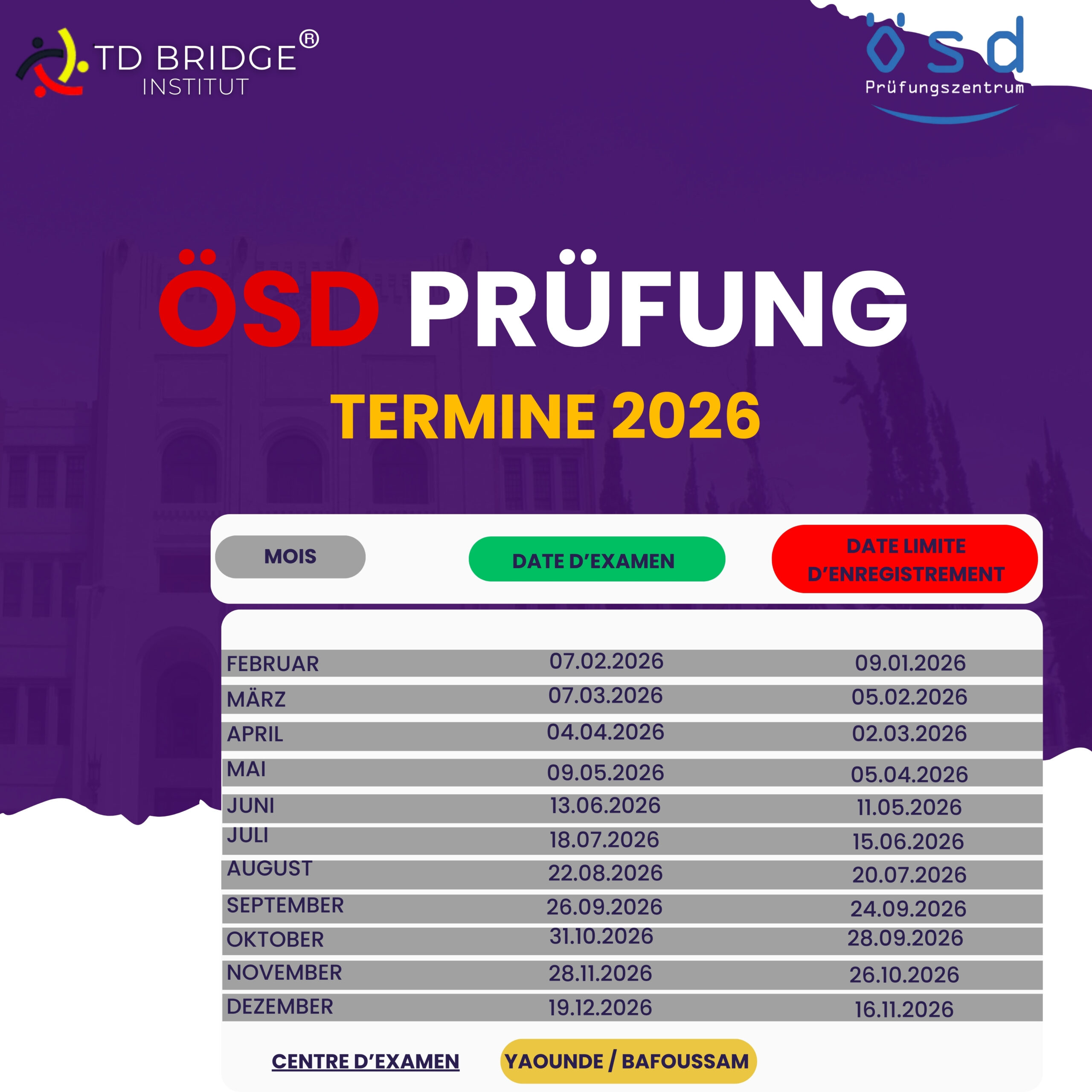 Calendrier des Examens ÖSD 2026